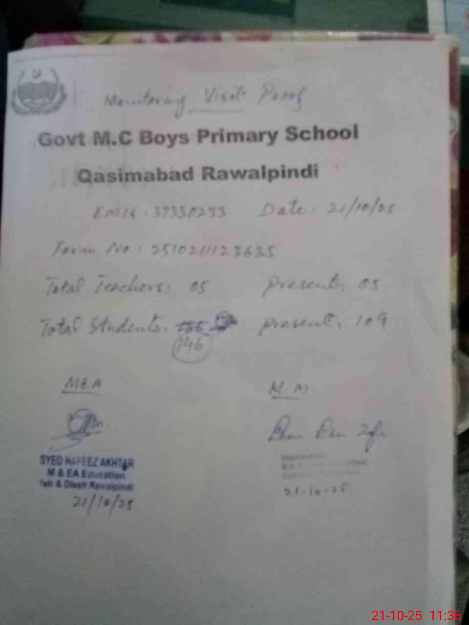 | EMIS Code: 37330233 | Name of School: GPS MC QASIMABAD STREET NO. 6 RWP | |||