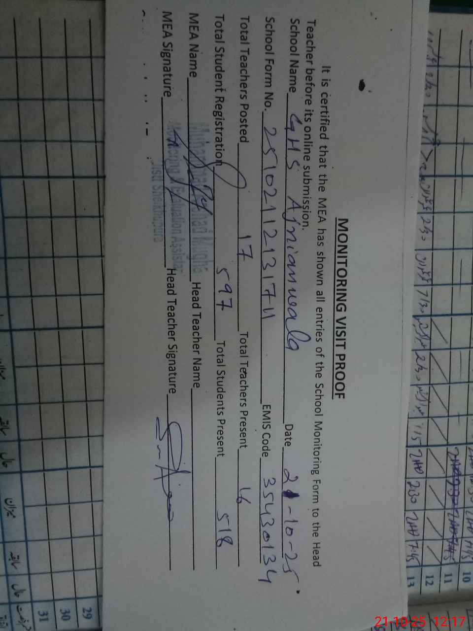 | EMIS Code: 35430134 | Name of School: GHS AJNIAN WALA | |||
