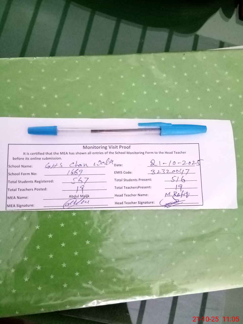 | EMIS Code: 32320047 | Name of School: GHS CHAN WALA | |||