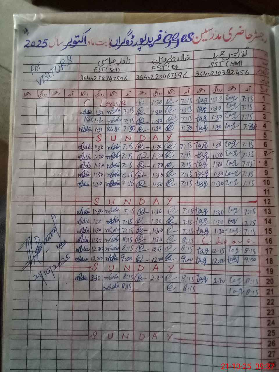 | Name: Ta**** Ha**** Designation: (School Headmaster's/Headmistress's) SST Phone/Cell Number: 03**** |