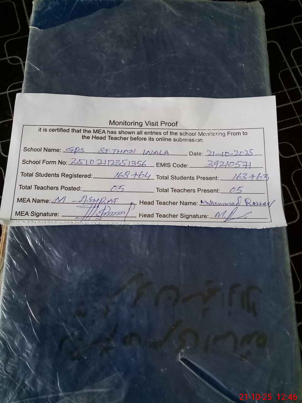 | EMIS Code: 39210571 | Name of School: GPS SETHAN WALA | |||