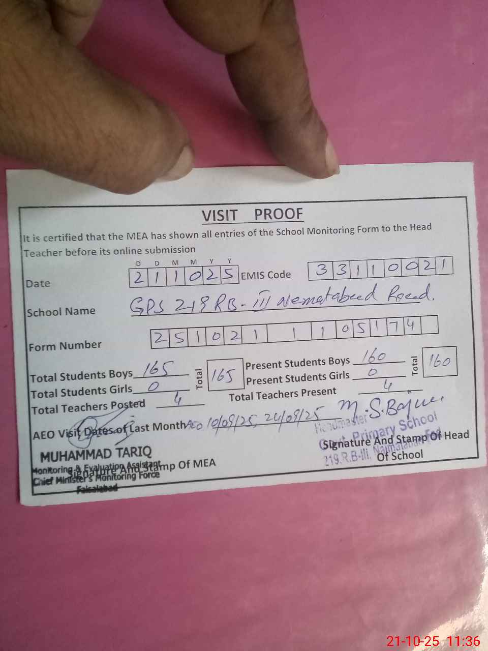 | EMIS Code: 33110021 | Name of School: GPS NAIMAT ABAD FSD | |||