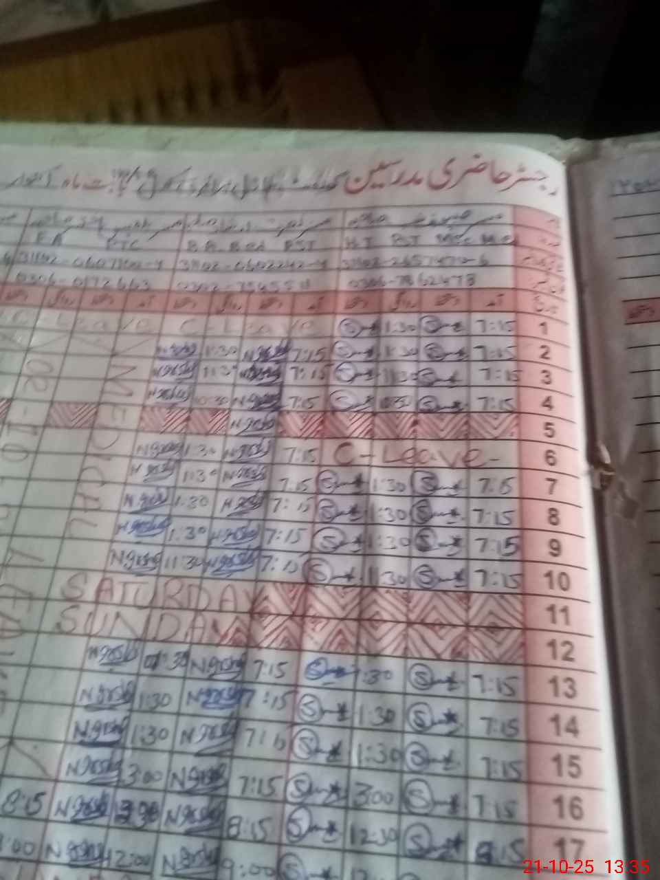 | CNIC | Full Name | Designation | R/C | Absence During Last Calender Month |