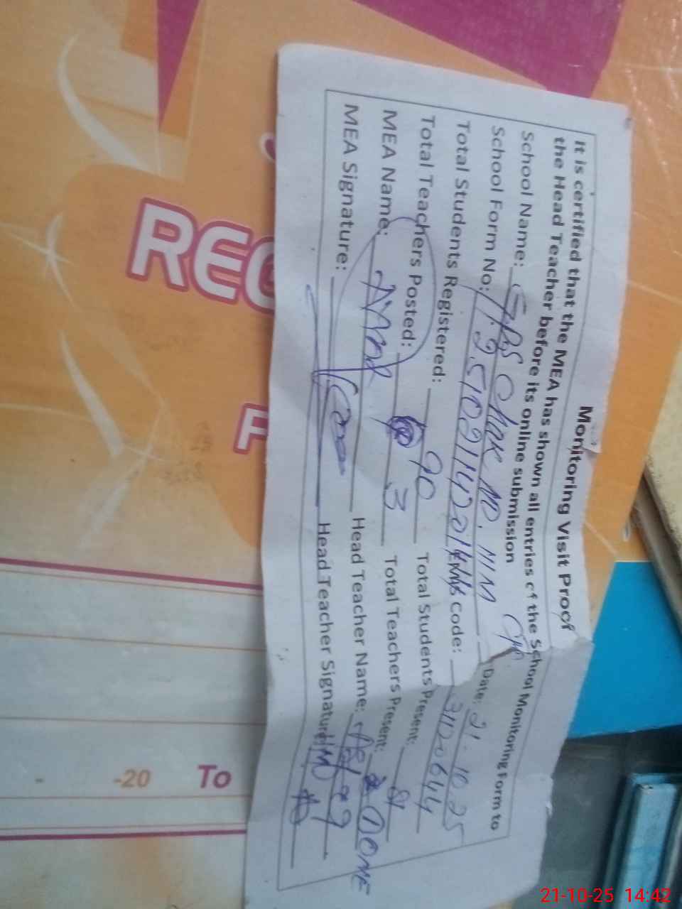 | Certified that this School was Inspected by the Undersigned MEA/DMO Today and the Information Stated Above is as Per Record. | |||||