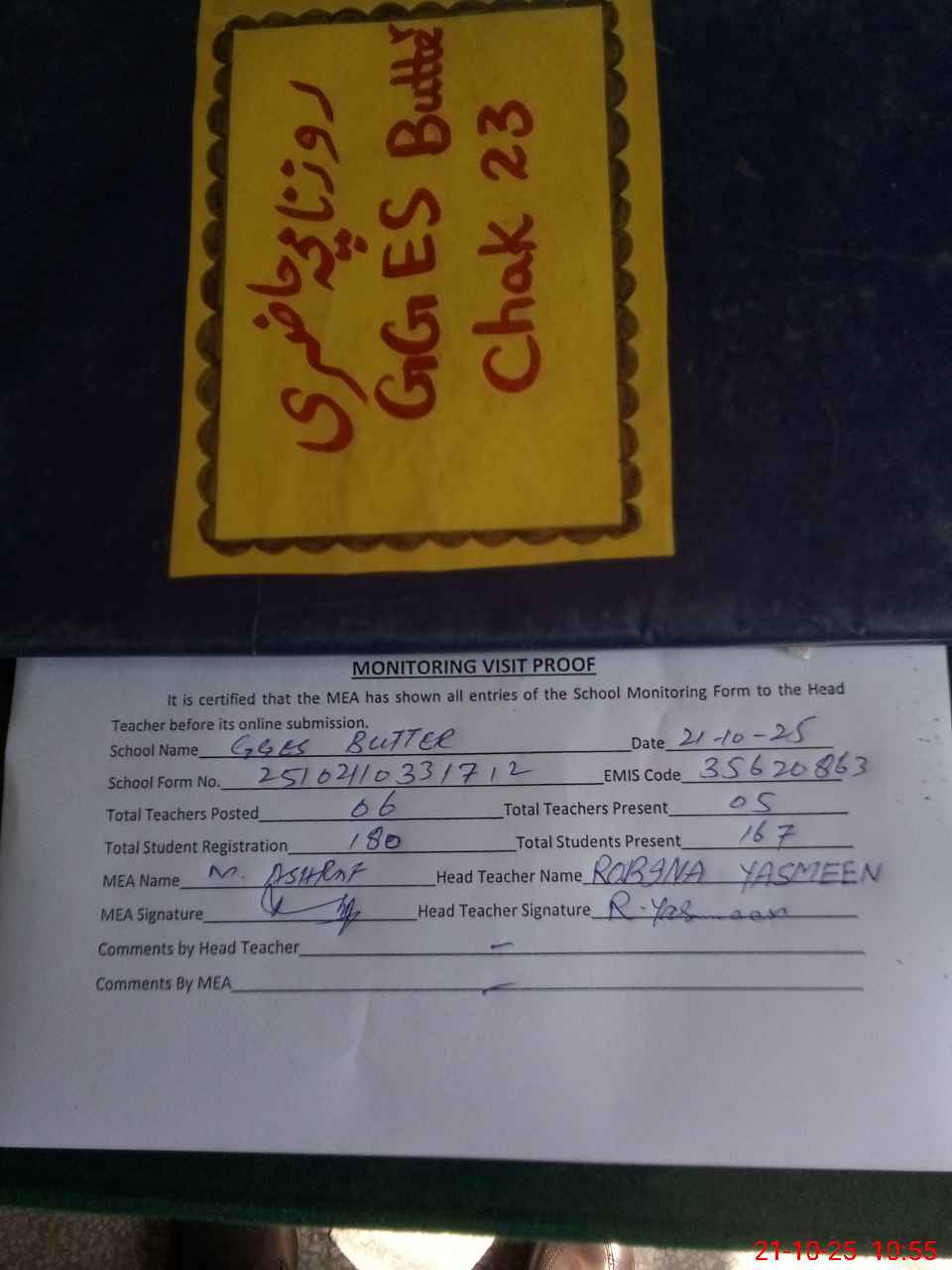 | EMIS Code: 35620863 | Name of School: GGES BUTTER CHAK 23 | |||