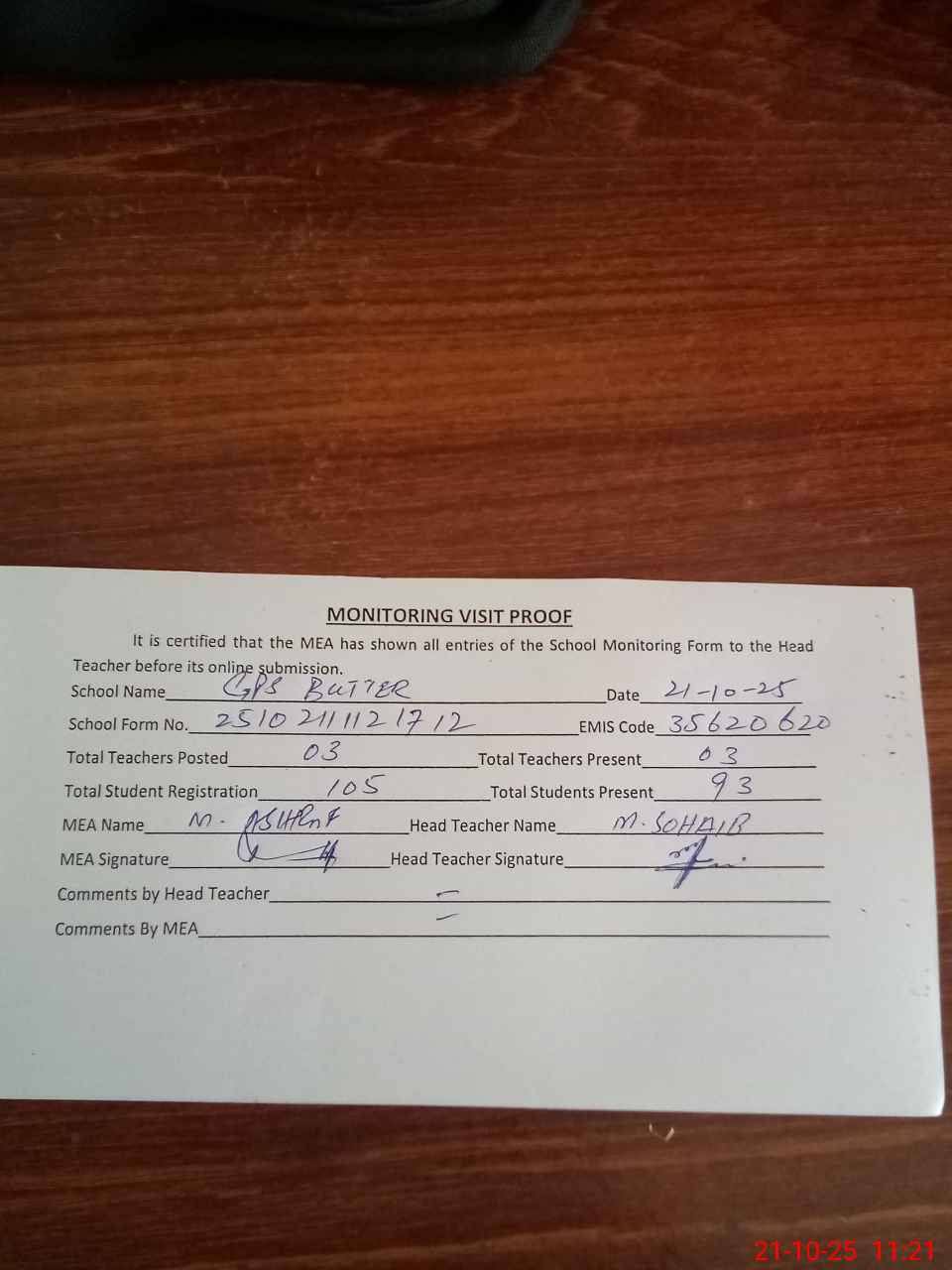 | EMIS Code: 35620620 | Name of School: GPS BUTTER NO. 23 | |||