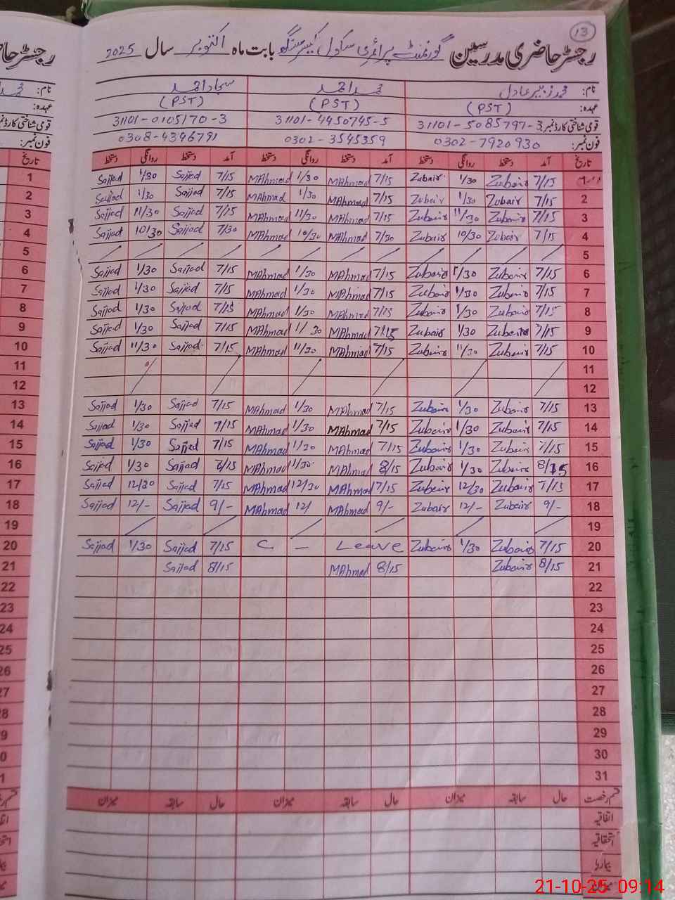 | Name: MO**** ZU**** AD**** Designation: (School Headmaster's/Headmistress's) PST Phone/Cell Number: 03**** |