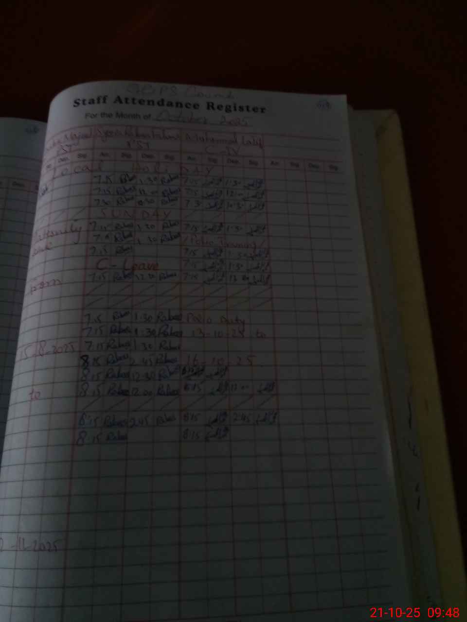 | Leave | Duty | Absent | Maternity | Medical | Ex- Pak |