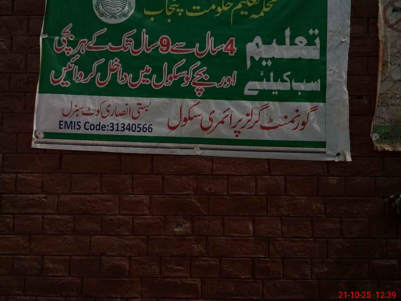 | EMIS Code: 31340566 | Name of School: GGPS ANSARI BASTI | |||