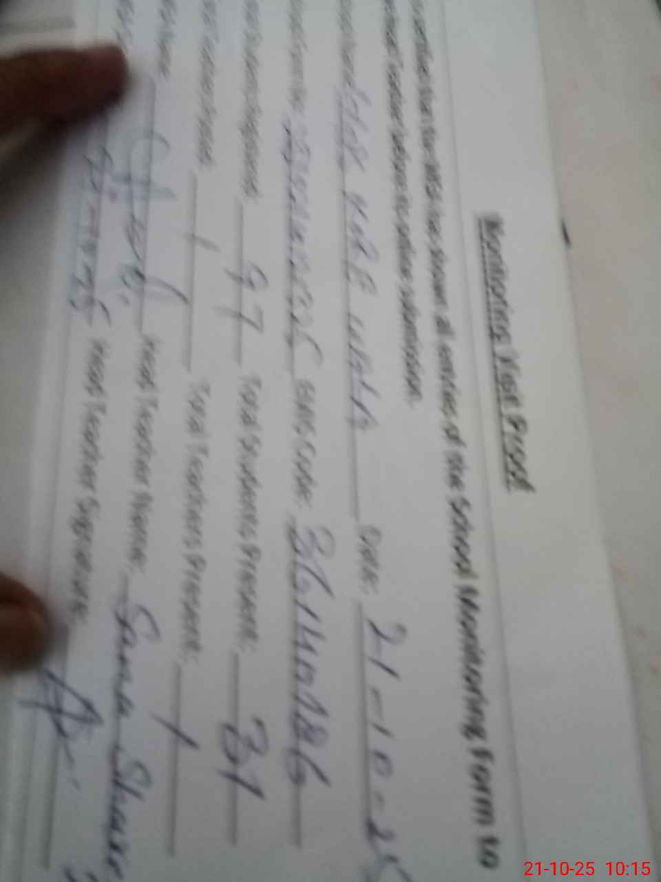 | Attendance Register | Head Teacher | MEA with School | Visit Proof |