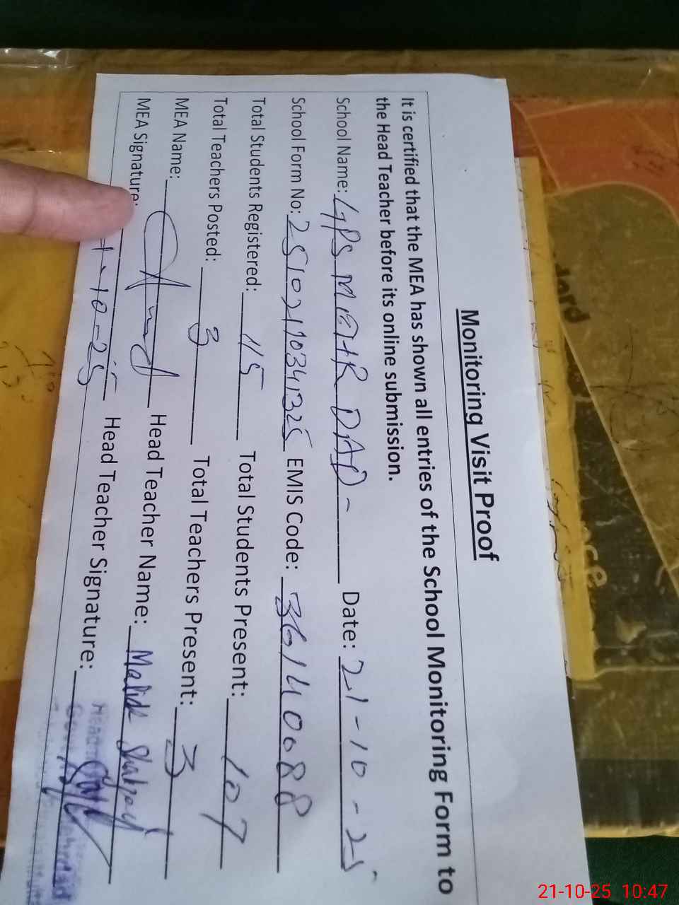 | EMIS Code: 36140088 | Name of School: GPS MEHR DAD P/O KOTLA CHAKAR JPP | |||