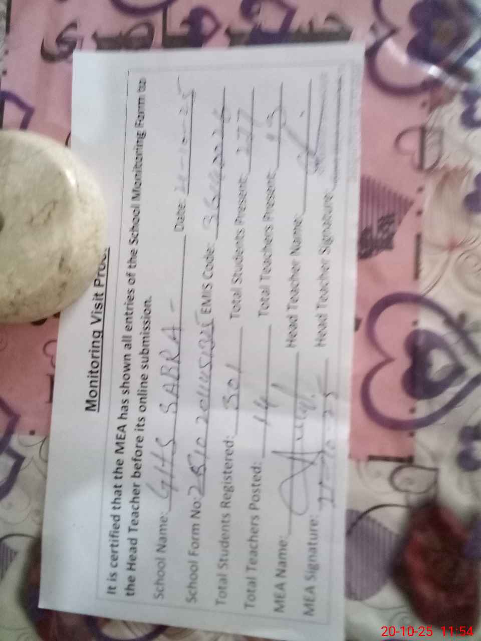 | Certified that this School was Inspected by the Undersigned MEA/DMO Today and the Information Stated Above is as Per Record. | |||||