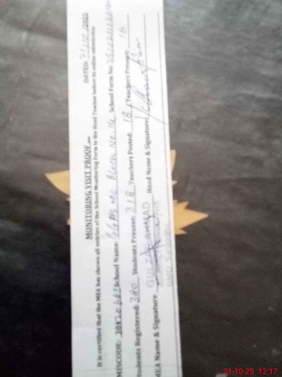 | Attendance Register | Head Teacher | MEA with School | Visit Proof |
