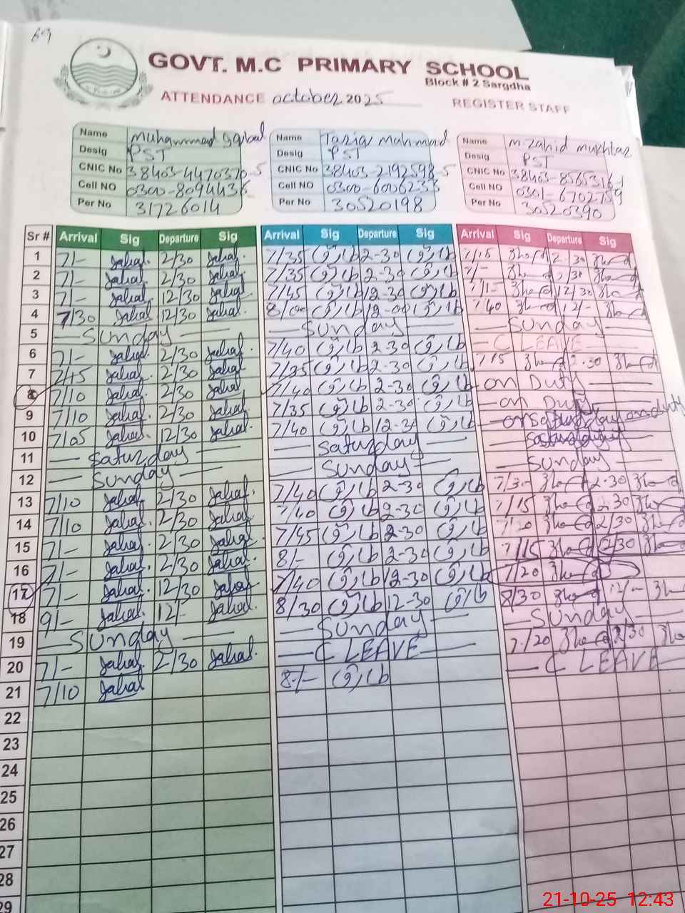 | Name: Mu**** Iq**** Designation: (School Headmaster's/Headmistress's) PST Phone/Cell Number: 03**** |