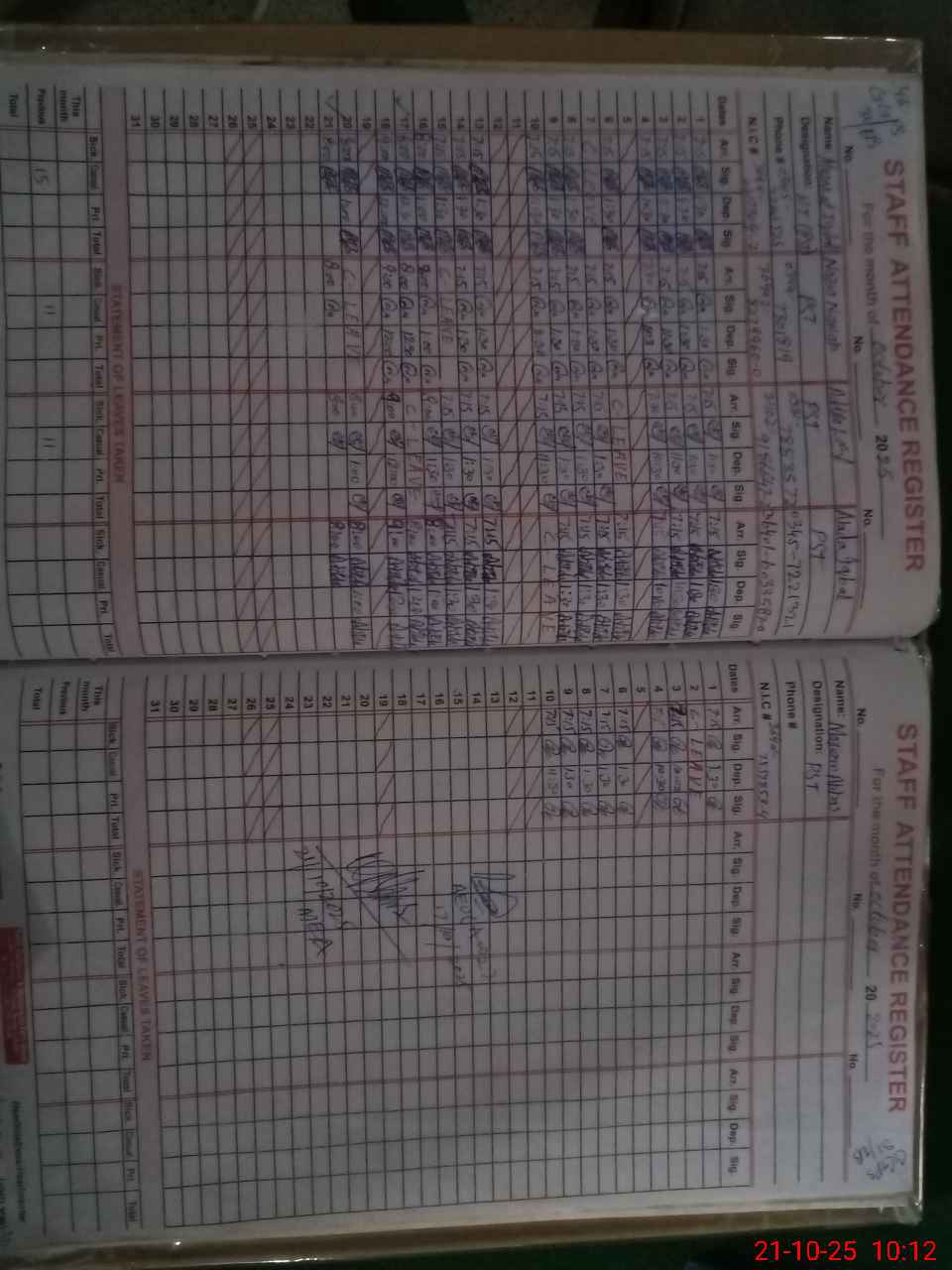 | CNIC | Full Name | Designation | R/C | Absence During Last Calender Month |