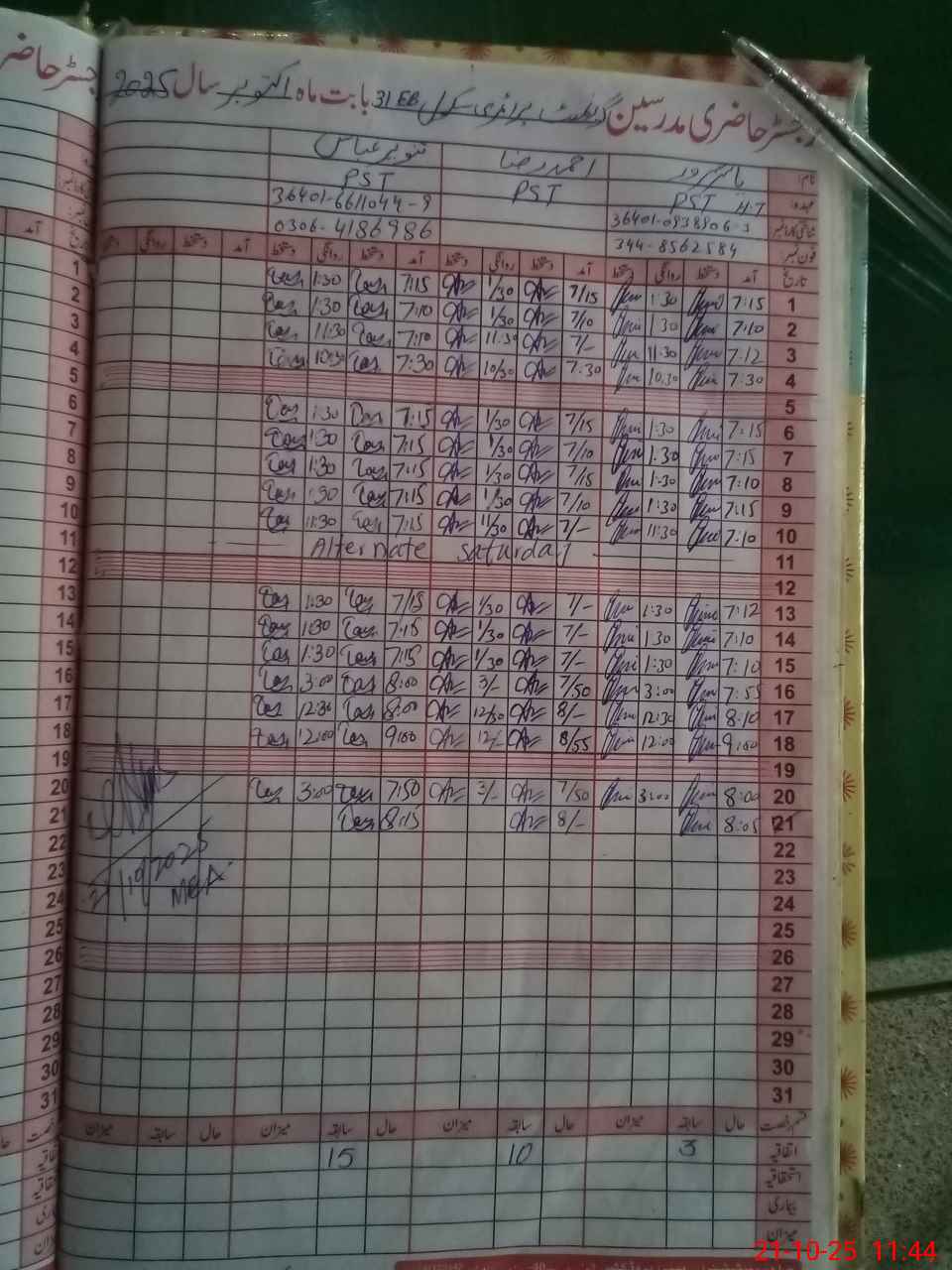 | Name: YA**** SA**** Designation: (School Headmaster's/Headmistress's) PST Phone/Cell Number: 03**** |