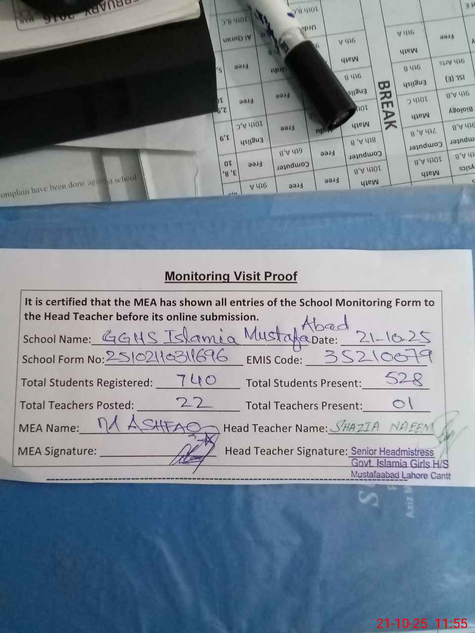 | EMIS Code: 35210079 | Name of School: GGHS ISLAMIA MUSTAFABAD | |||