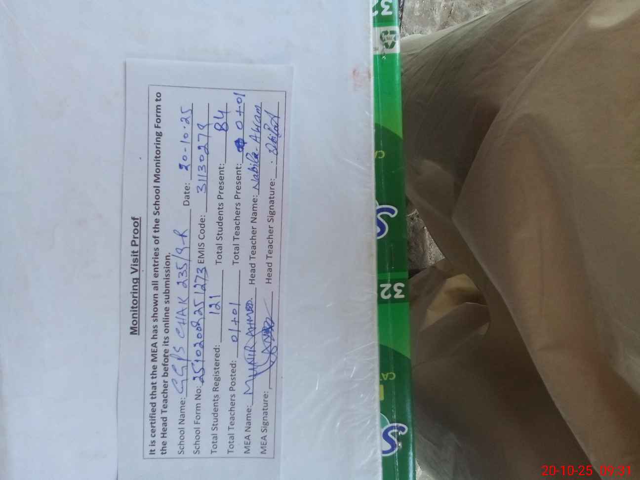 | EMIS Code: 31130279 | Name of School: GGPS CHAK NO. 235/9-R | |||