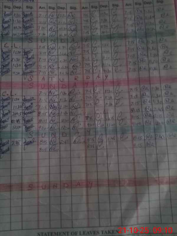| CNIC | Full Name | Designation | R/C | Absence During Last Calender Month |