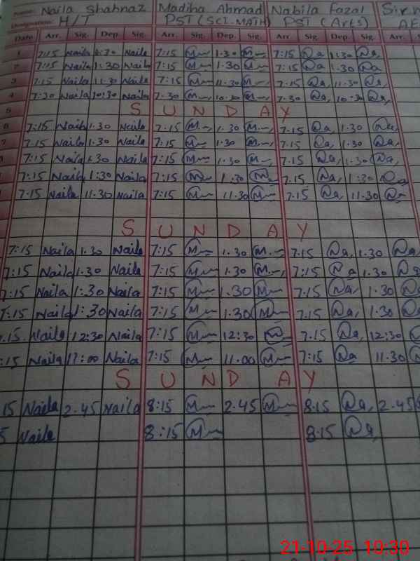 | CNIC | Full Name | Designation | R/C | Absence During Last Calender Month |