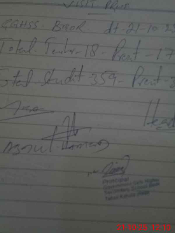 | Attendance Register | Head Teacher | MEA with School | Visit Proof |