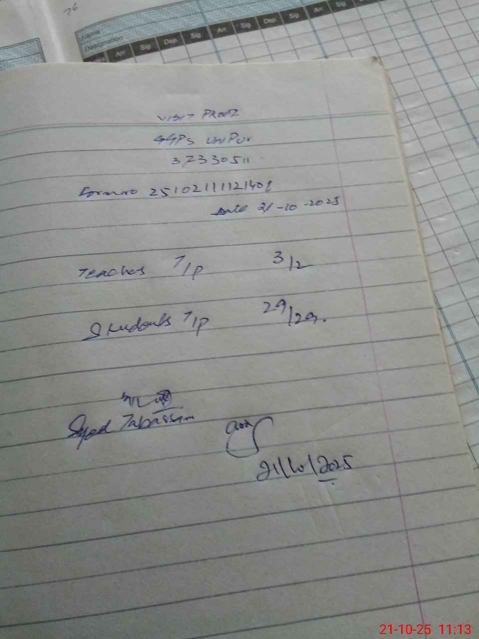 | Monitoring Date: 21-10-2025 | Start Time: 21-10-2025 10:55 AM | End Time: 21-10-2025 11:14 AM | Name of MEA: Ta**** Na**** | |