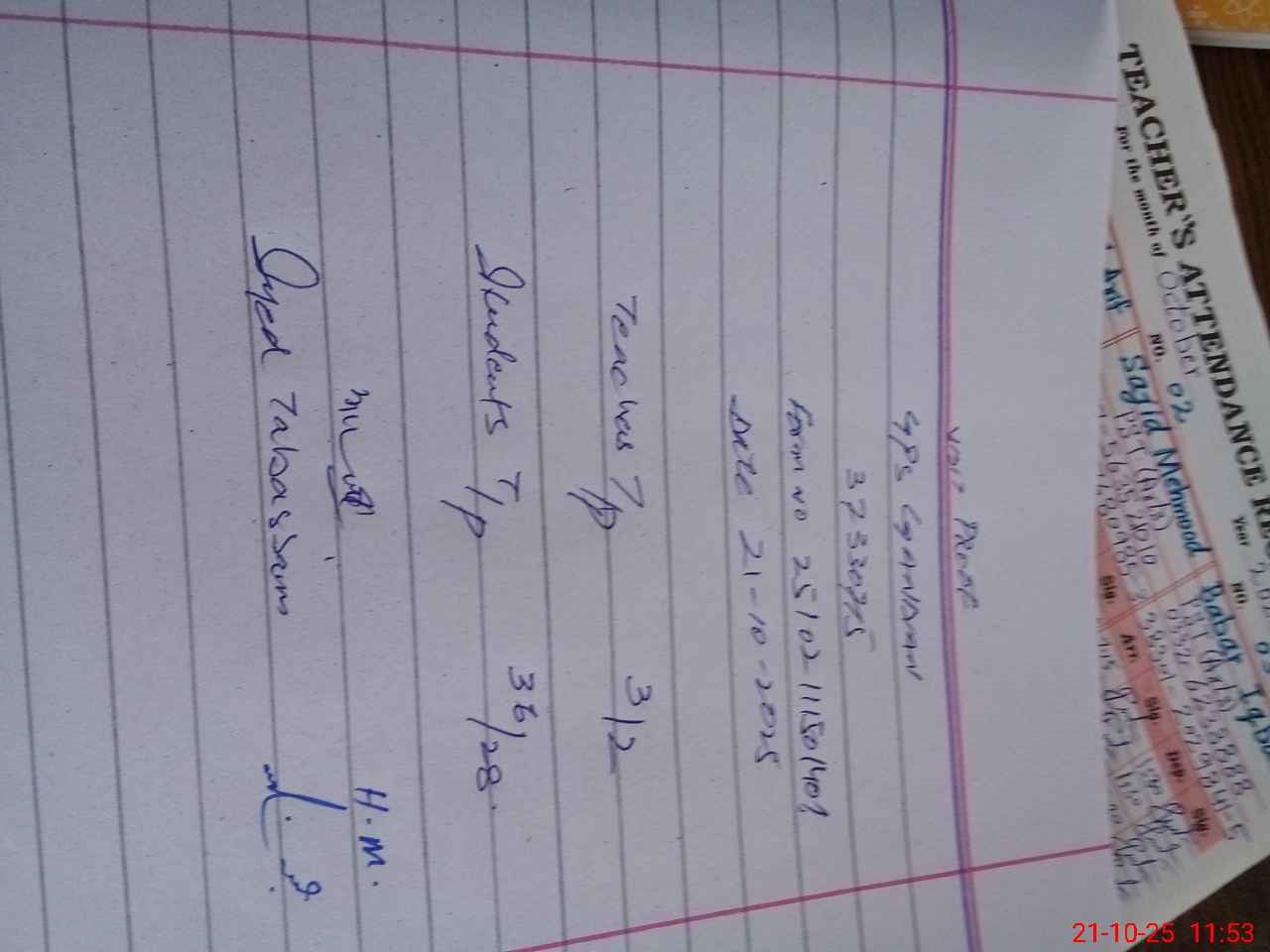 | Attendance Register | Head Teacher | MEA with School | Visit Proof |