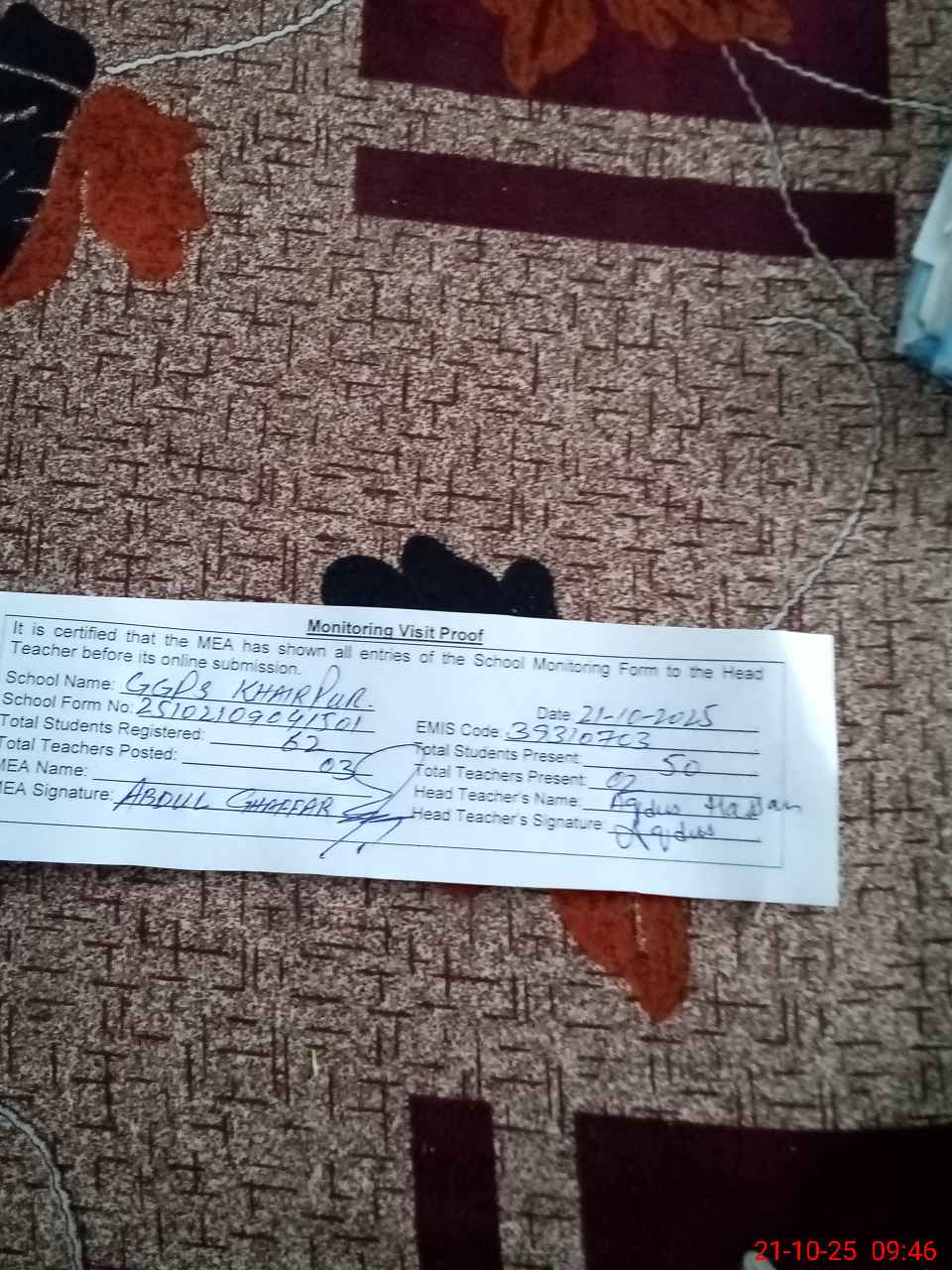 | EMIS Code: 39310703 | Name of School: GGPS KHAIR PUR | |||