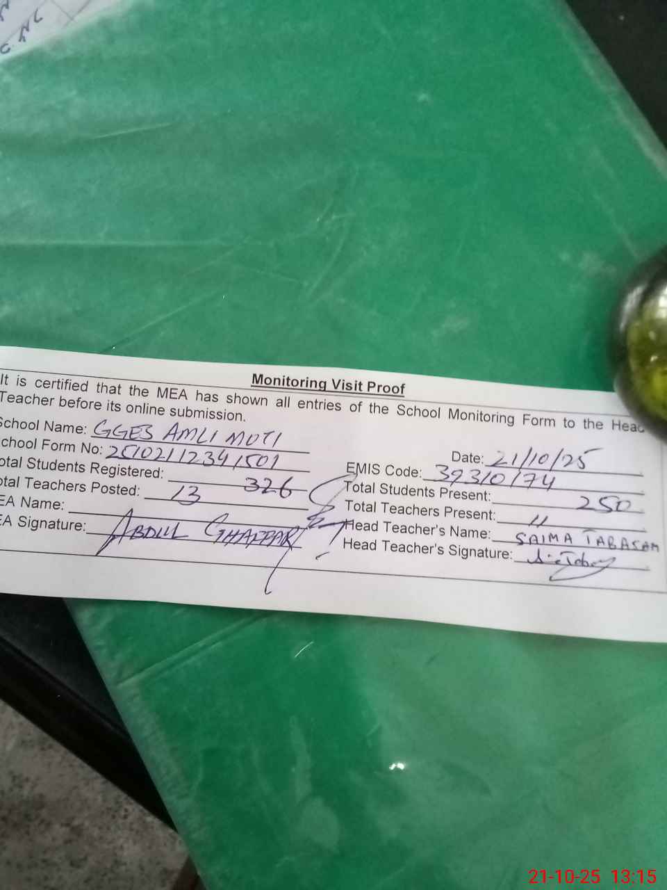 | EMIS Code: 39310174 | Name of School: GGES AMLI MOTI | |||