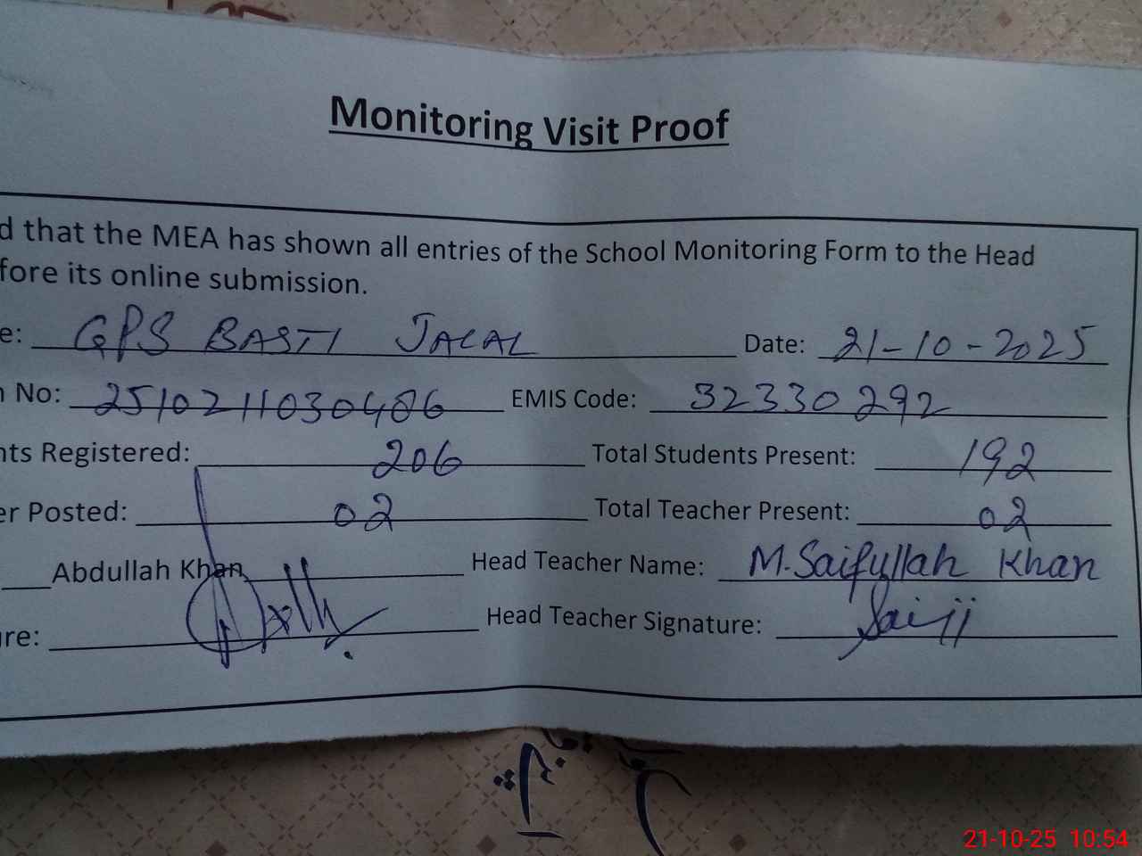 | EMIS Code: 32330292 | Name of School: GPS BASTI JALAL | |||