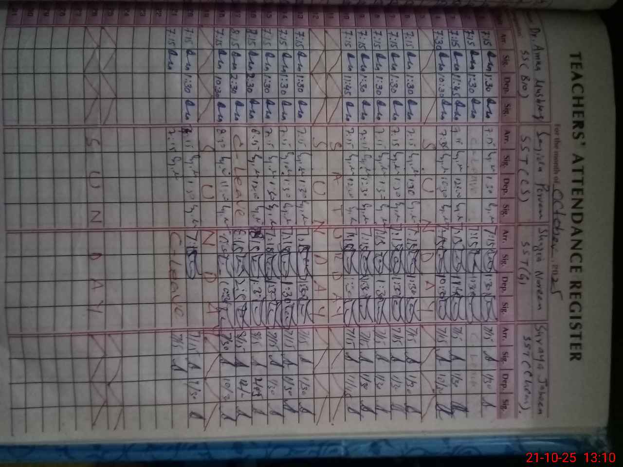 | CNIC | Full Name | Designation | R/C | Absence During Last Calender Month |
