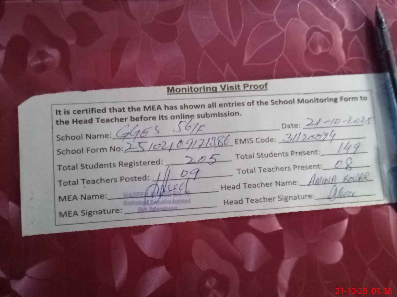 | EMIS Code: 31120074 | Name of School: GGES CHAK NO 56/F | |||
