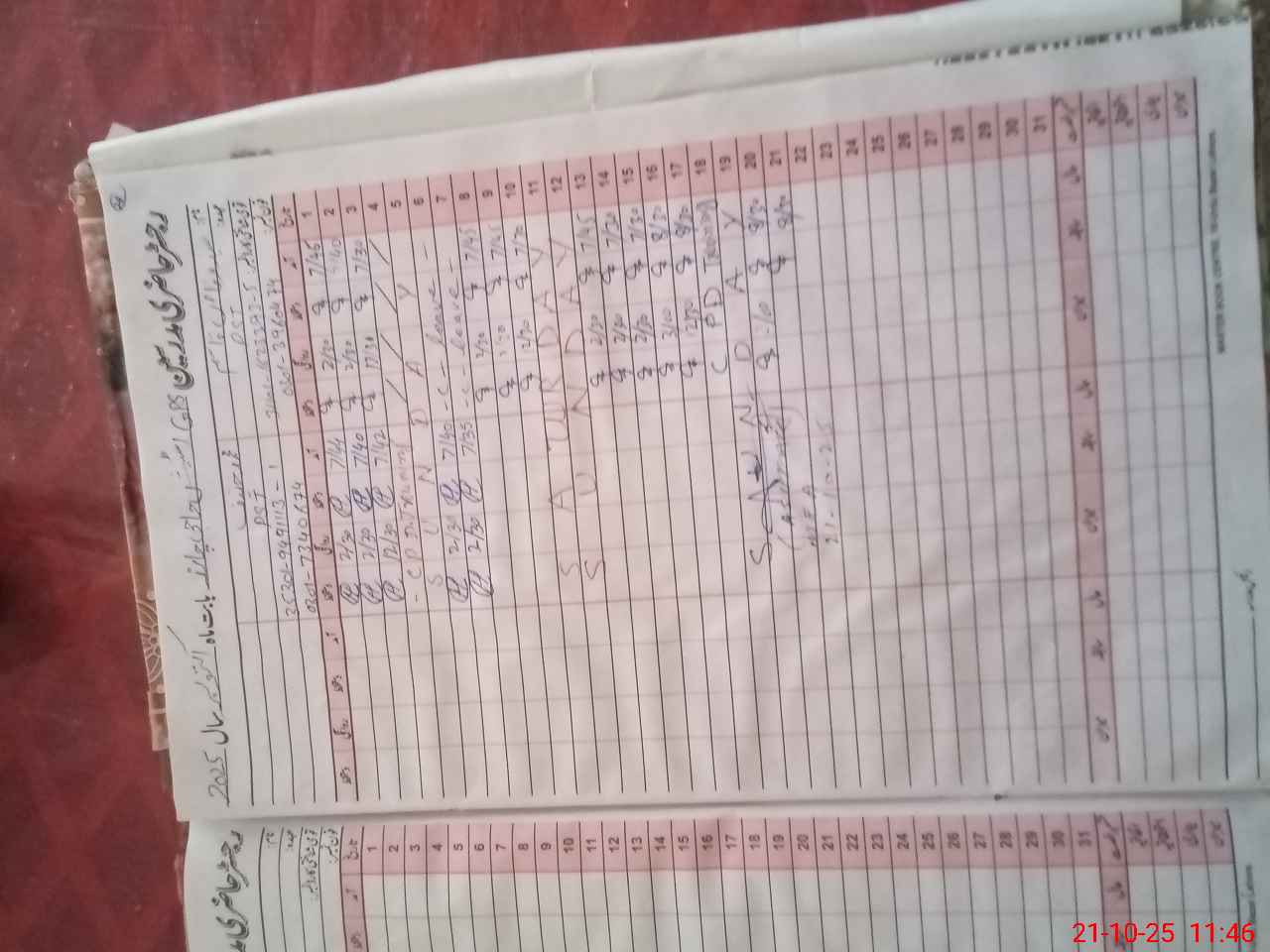 | CNIC | Full Name | Designation | R/C | Absence During Last Calender Month |