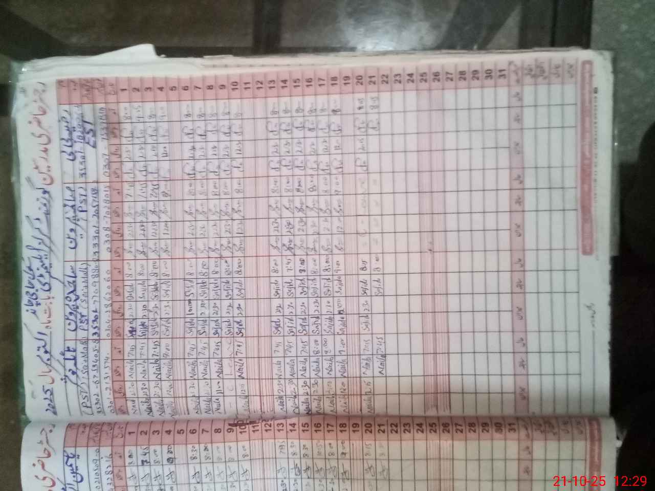 | CNIC | Full Name | Designation | R/C | Absence During Last Calender Month |