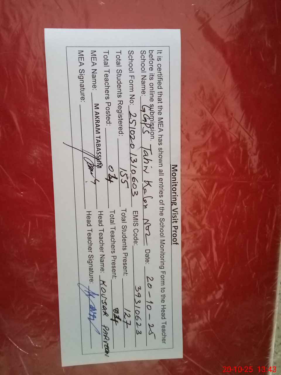 | EMIS Code: 39310623 | Name of School: GGPS TAHIR KALAN NO. 2 | |||