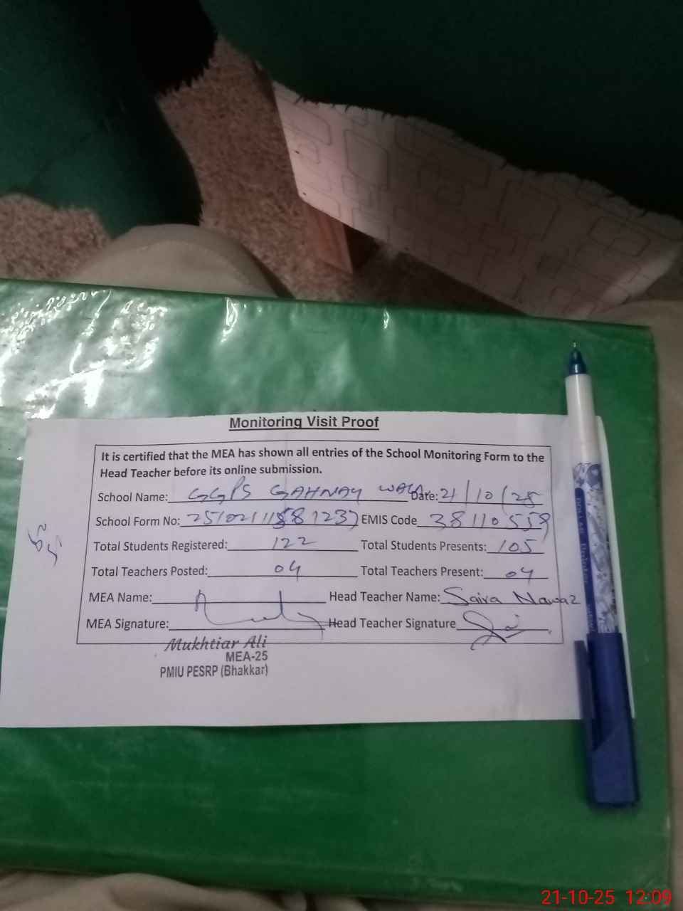 | EMIS Code: 38110559 | Name of School: GGPS GAHNAY WALA | |||