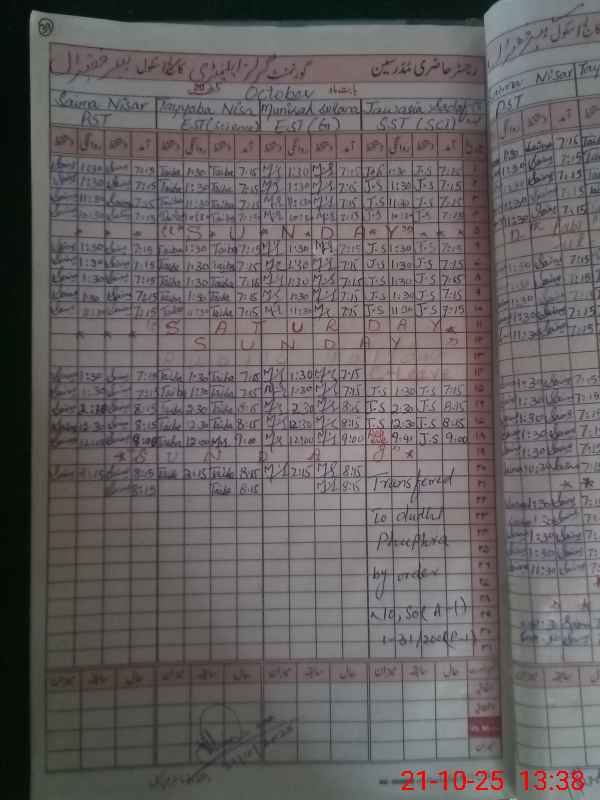 | CNIC | Full Name | Designation | R/C | Absence During Last Calender Month |