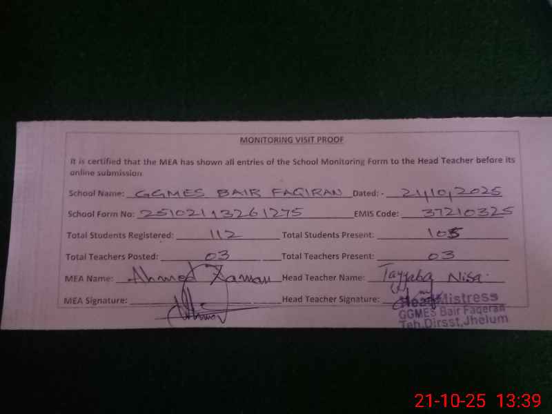 | Certified that this School was Inspected by the Undersigned MEA/DMO Today and the Information Stated Above is as Per Record. | |||||