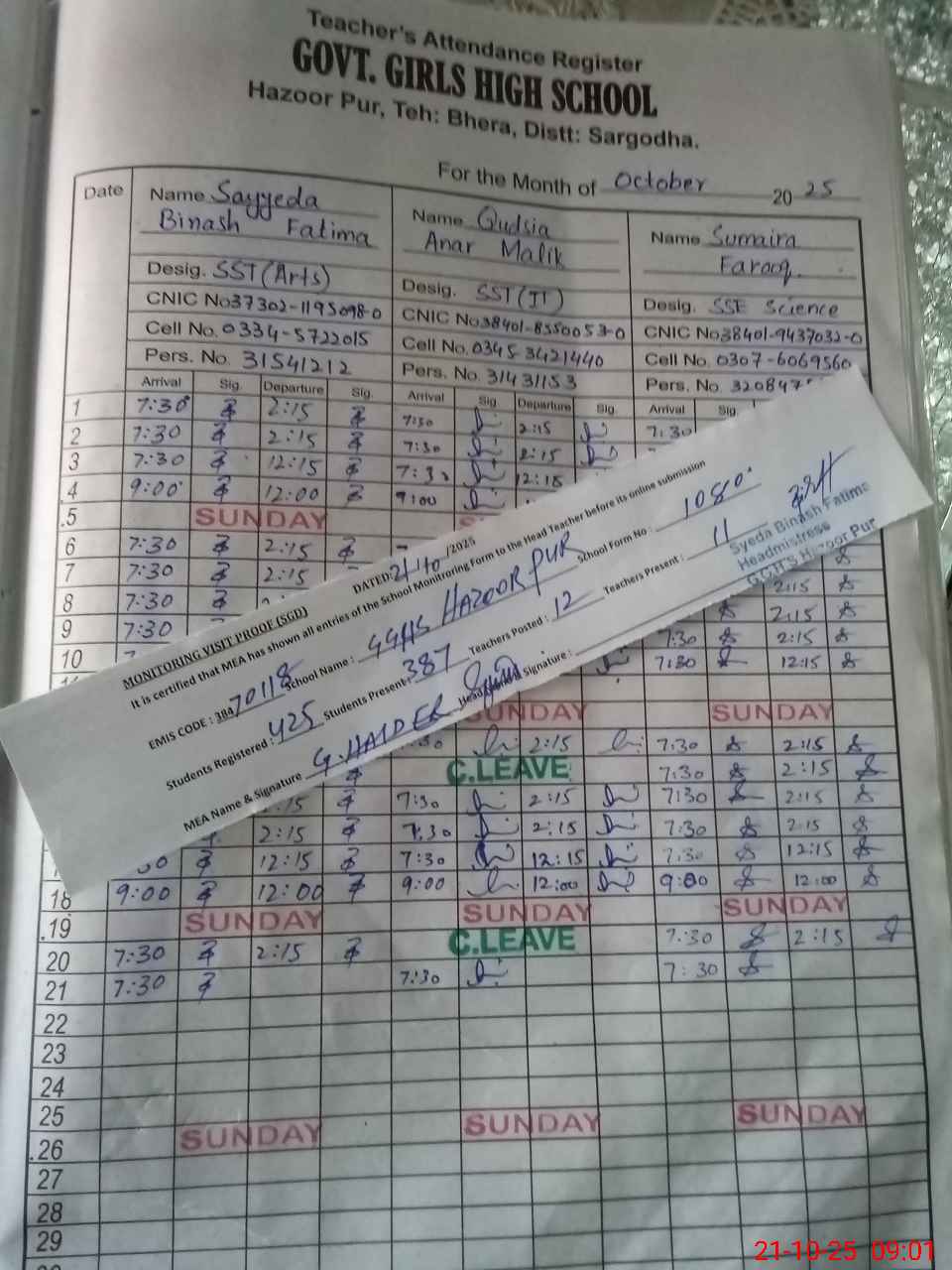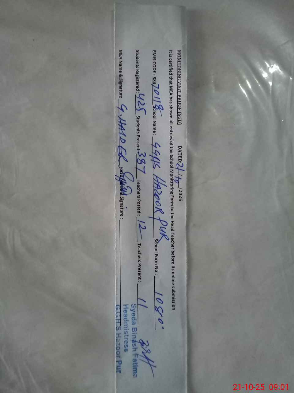 | EMIS Code: 38470118 | Name of School: GGHS HAZOOR PUR | |||