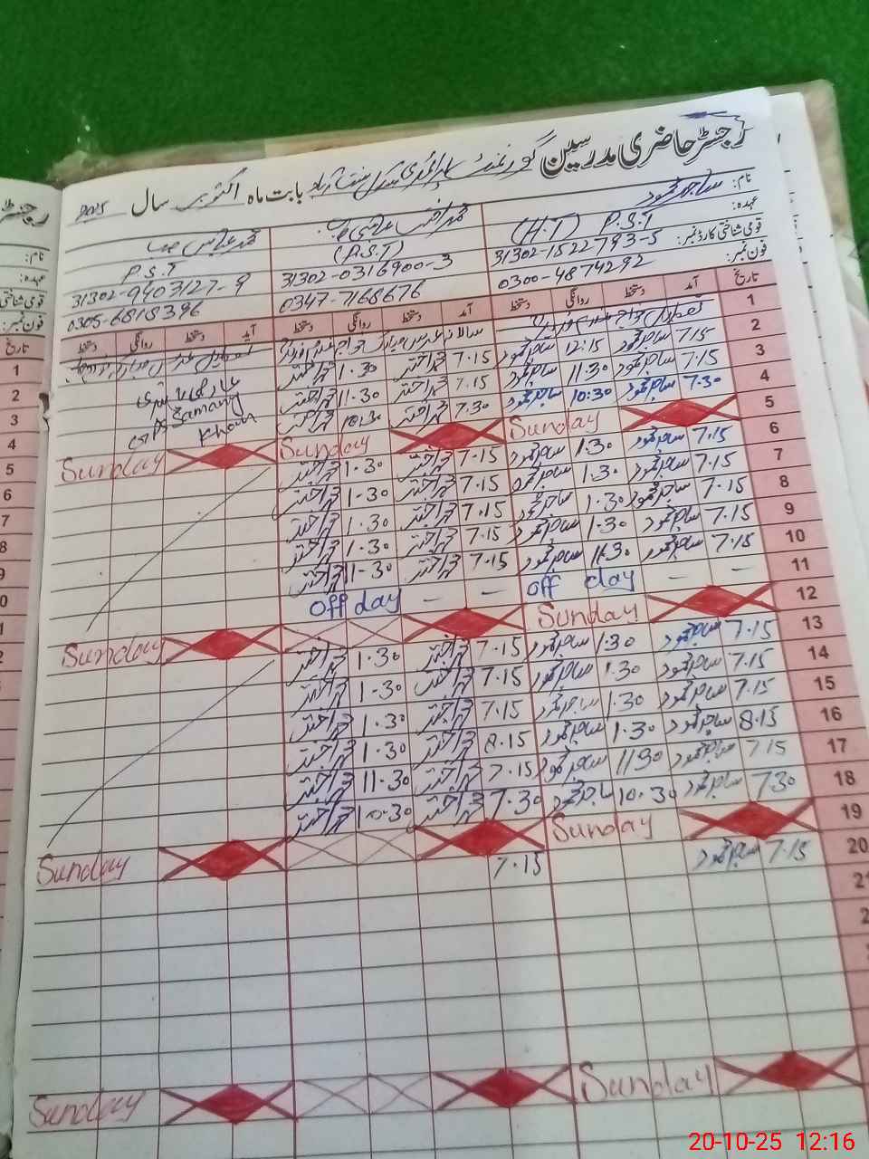 | CNIC | Full Name | Designation | R/C | Absence During Last Calender Month |