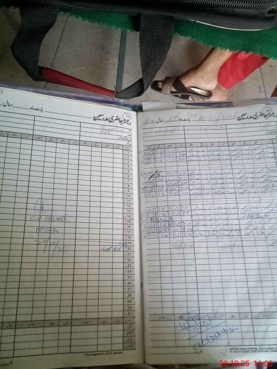 | CNIC | Full Name | Designation | R/C | Absence during last cal. month |