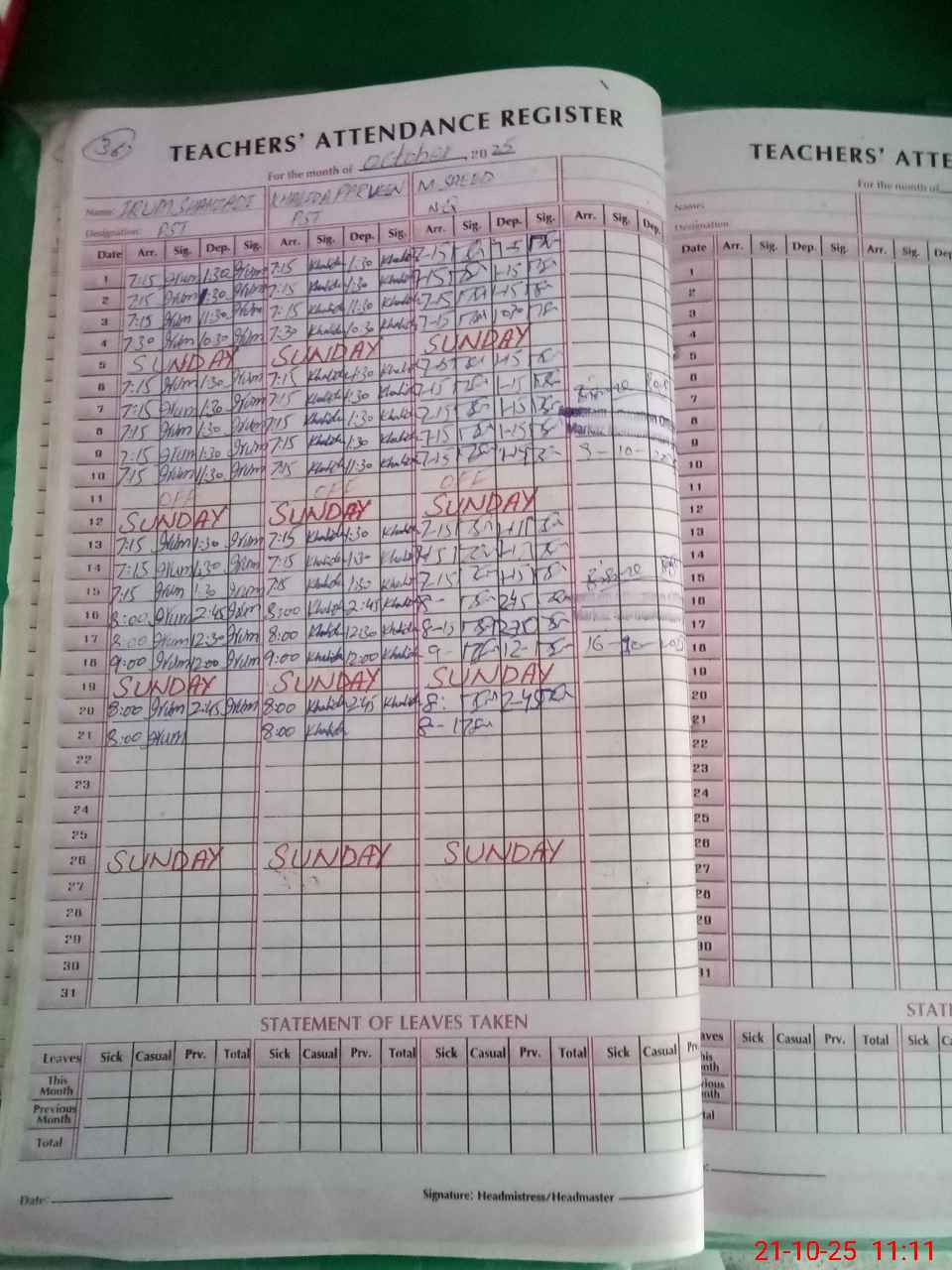 | Name: IR**** SH**** Designation: (School Headmaster's/Headmistress's) PST Phone/Cell Number: 03**** |