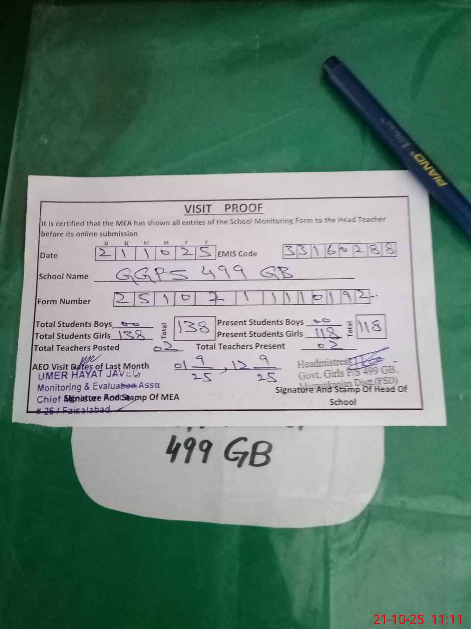 | EMIS Code: 33160288 | Name of School: GGPS CHAK 499 GB MAMUNKANJAN | |||