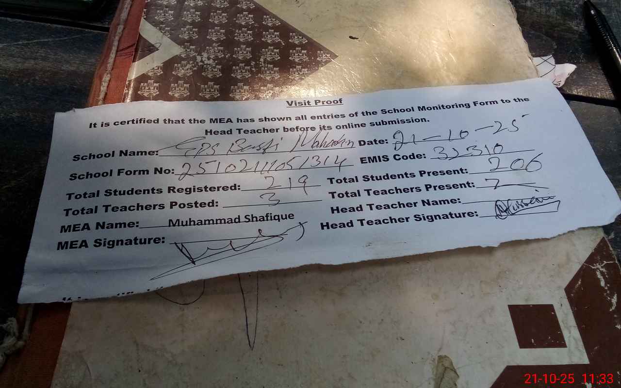 | Attendance Register | Head Teacher | MEA with School | Visit Proof |