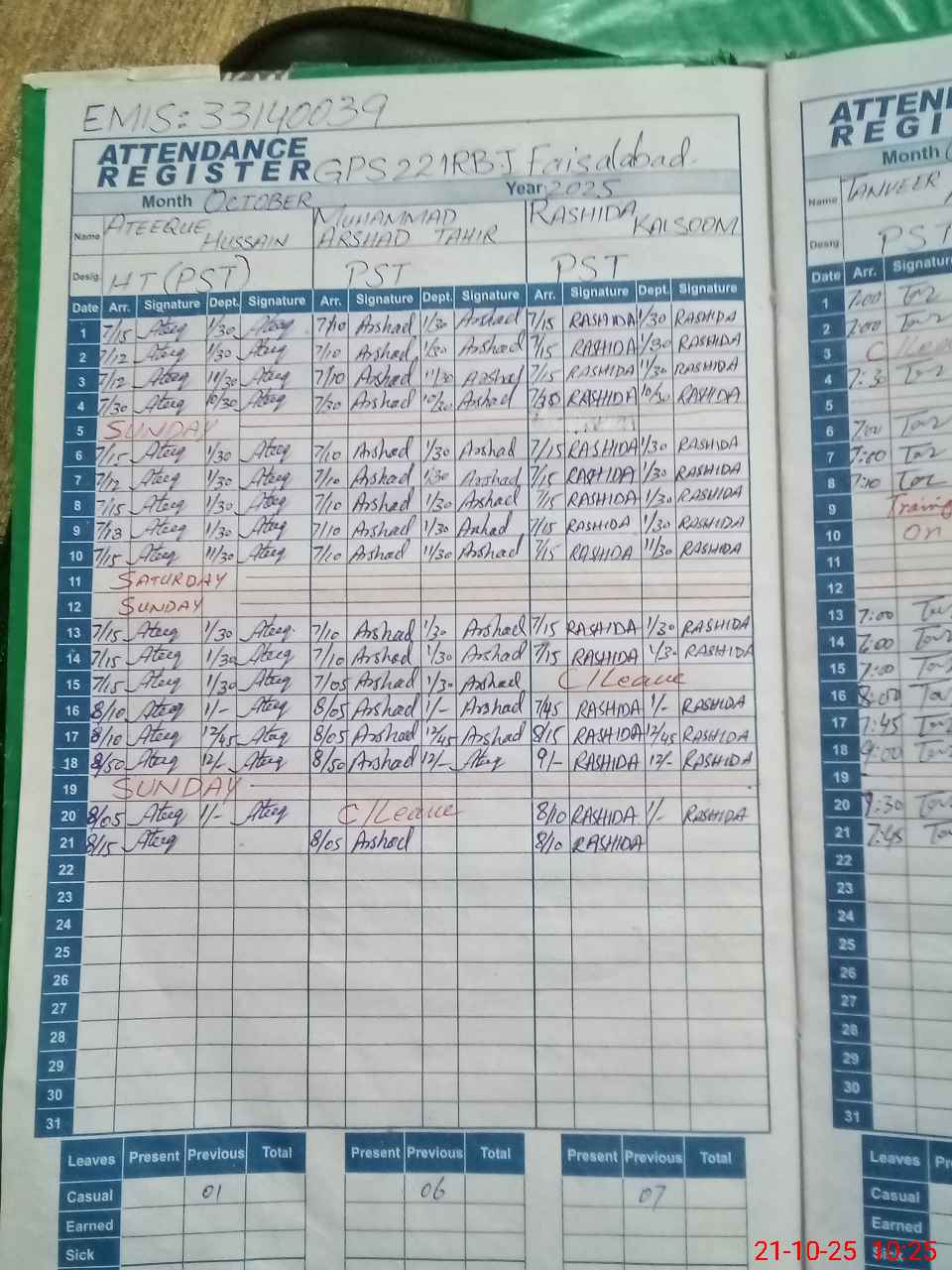 | 33**** | Mu**** Na**** | PST | Regular | 0 | 0 | 0 | 0 | 0 | 0 | 0 | 0 | 0 | Absent (Un-Authorized) |
