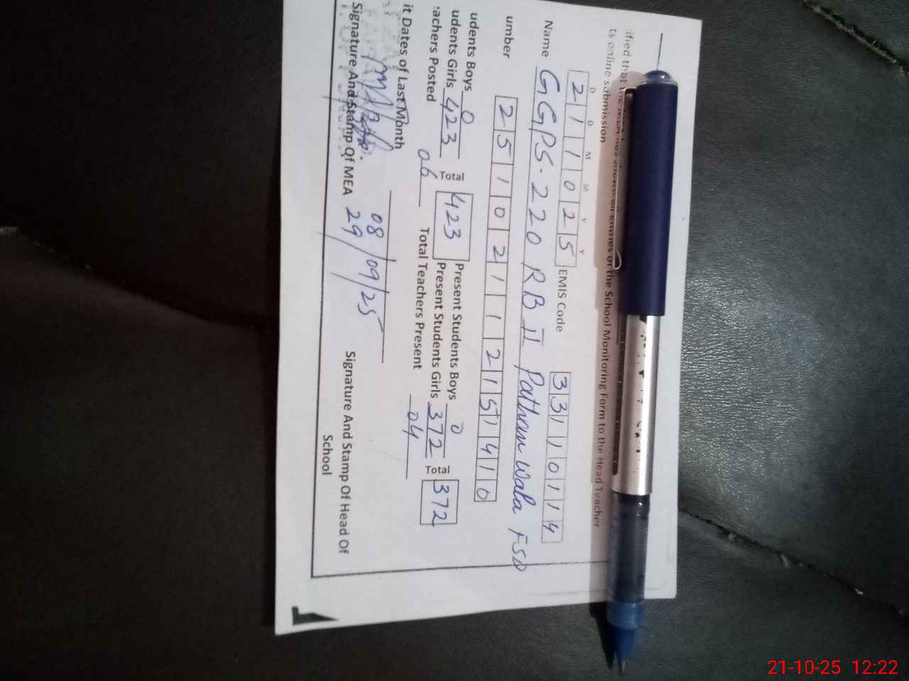 | EMIS Code: 33110114 | Name of School: GGPS CHAK NO 220 RB 11 | |||