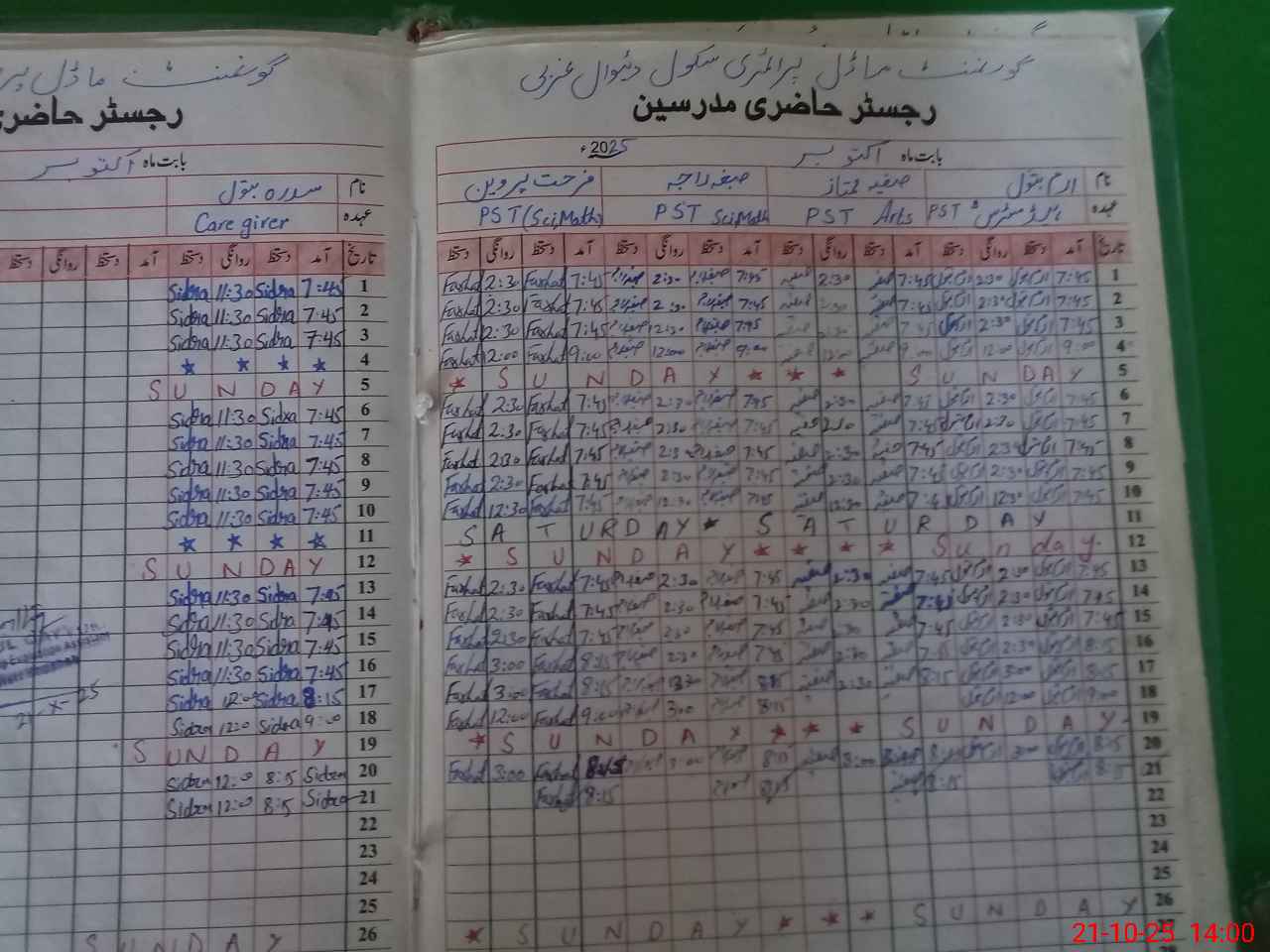 | Name: Ir**** Ba**** Designation: (School Headmaster's/Headmistress's) PST Phone/Cell Number: 03**** |