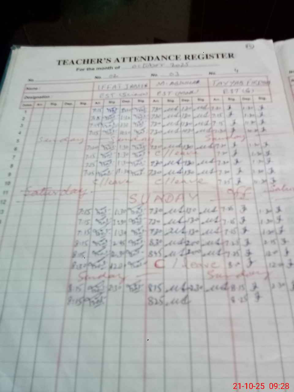 | Monitoring Date: 21-10-2025 | Start Time: 21-10-2025 09:00 AM | End Time: 21-10-2025 09:31 AM | Name of MEA: Na**** Sh**** | |