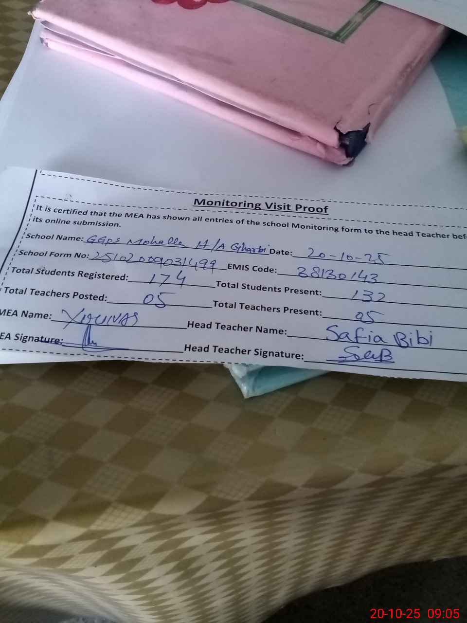 | EMIS Code: 38130143 | Name of School: GGPS MOHALLA GHARBI HAIDER ABAD | |||