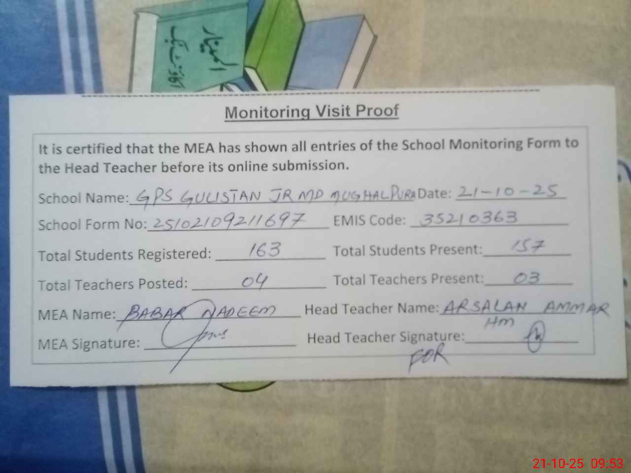 | EMIS Code: 35210363 | Name of School: GPS GULISTAN JUNIOR MODEL MUGHALPURA (JAMIL ABAD) | |||